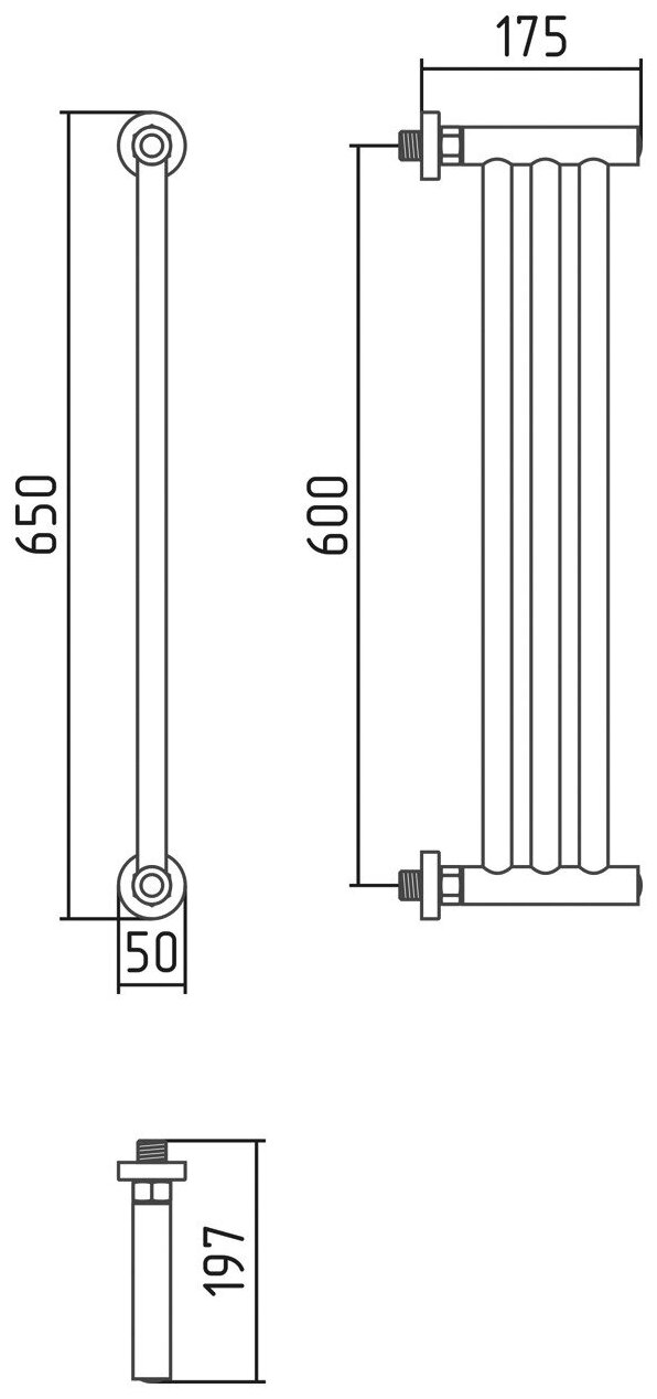 Полотенцесушитель водяной 600х195 подключение горизонтальное/вертикальное Сунержа Хорда 00-0124-0600