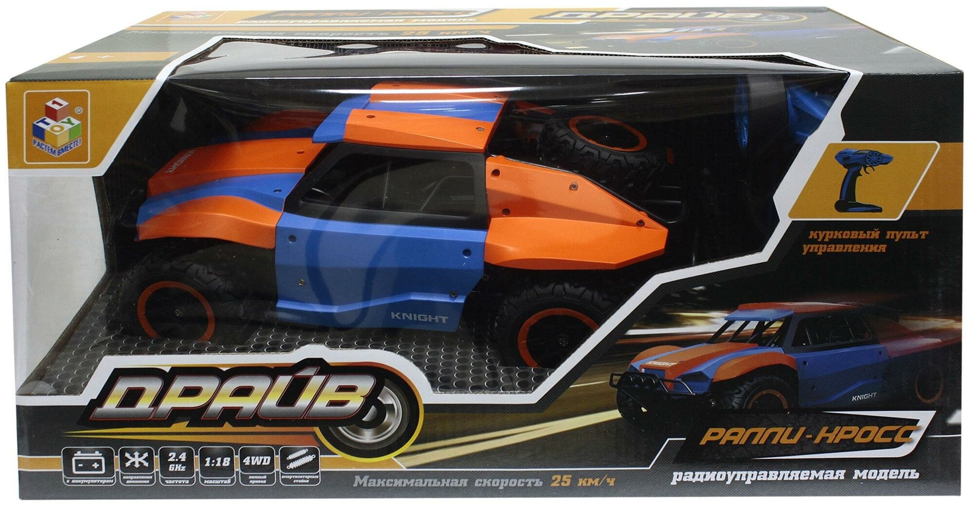 Раллийная машина 1TOY 1 TOY на радиоуправлении Драйв, 2,4GHz, 4WD, масштаб 1:18, скорость до 25км/ч, голубо-оранжевый 3 380 ₽ Подробнее