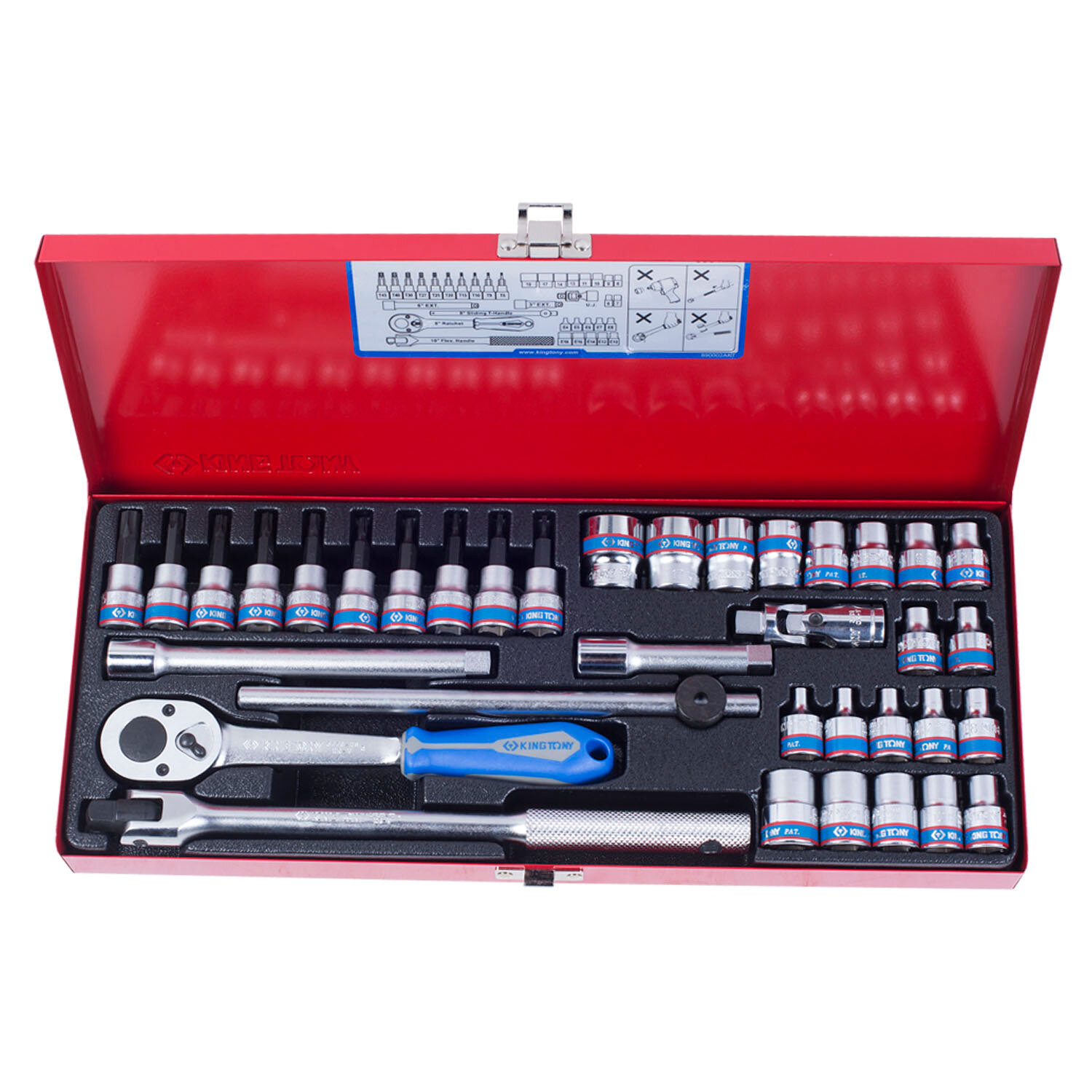 3534MR KING TONY Набор торцевых головок с принадлежностями 3/8", шестигранные, 6-19 мм 36 предметов