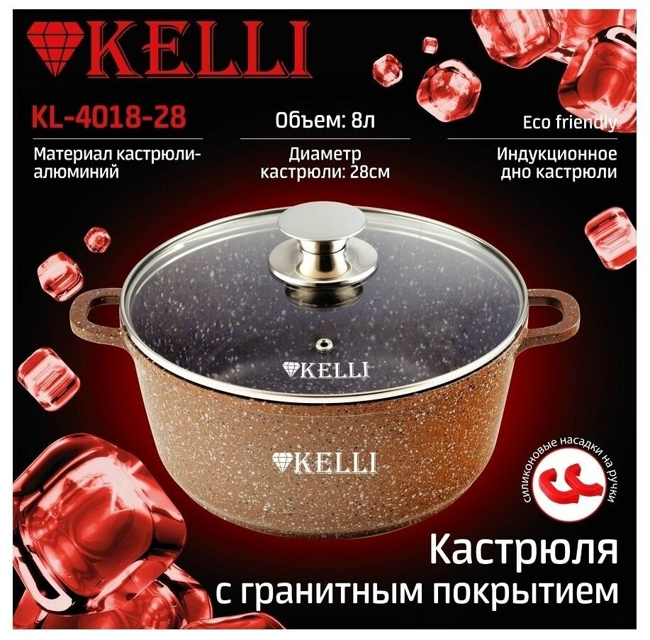 Кастрюля Kelli KL-4018-28 с гранитным покрытием 8,0л