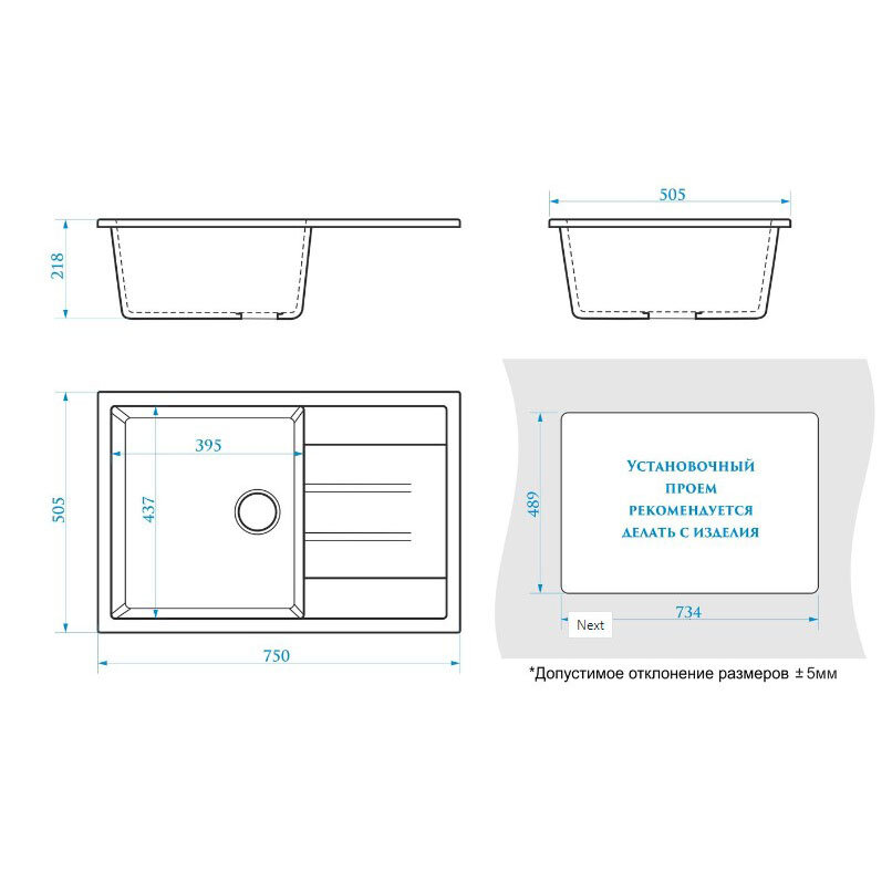 | Размеры врезного отверстия (накладная) | 734x489 мм |
