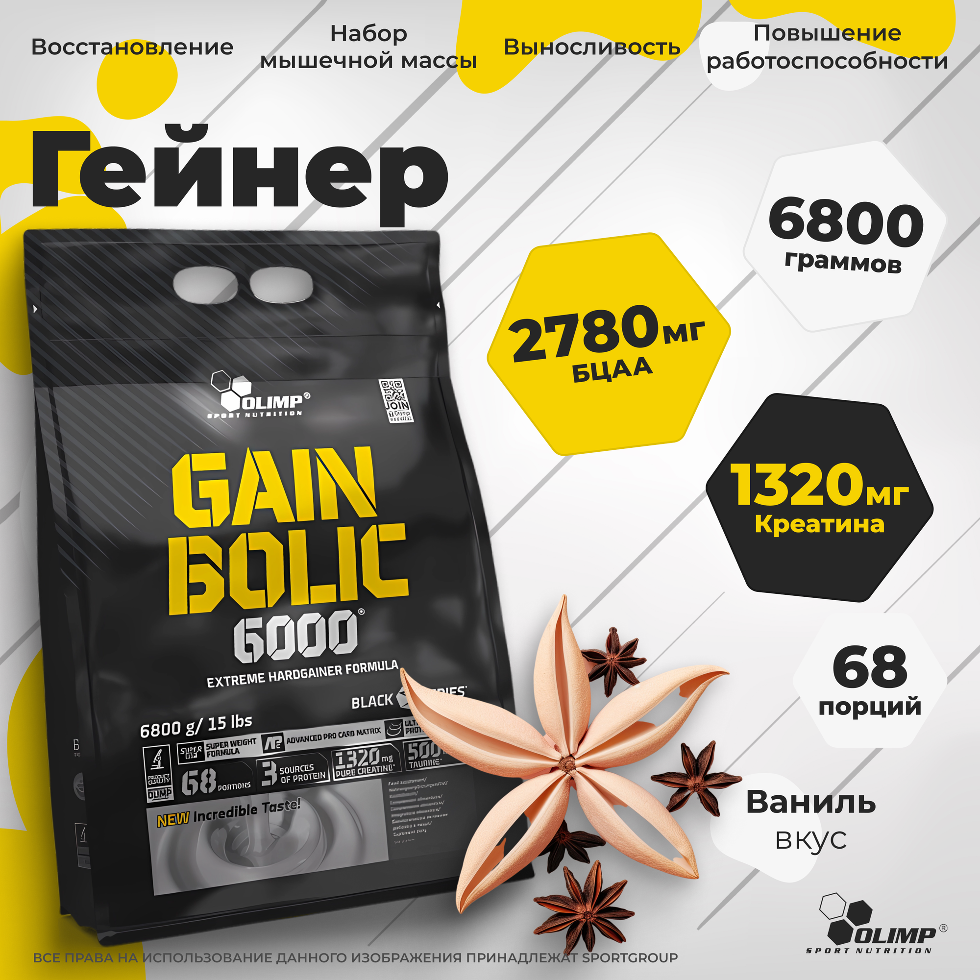 Гейнеры Гейнер Гейнер Olimp Sport Nutrition Gain Bolic 6000, Ваниль, 6800 г