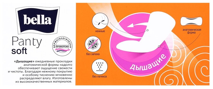 Лучшие цены. Описание ежедневных прокладок BELLA Panty Soft 20 шт Ежедневная прокладка традиционной толщины, анатомической формы, обеспечит ощущение свежести в течение всего дня. Верхний слой прокладки покрыт тонким и мягким нетканым материалом. Исключительный комфорт обеспечивает использование паропропускающего защитного ламината - кожа дышит. Магазины в вашем городе.