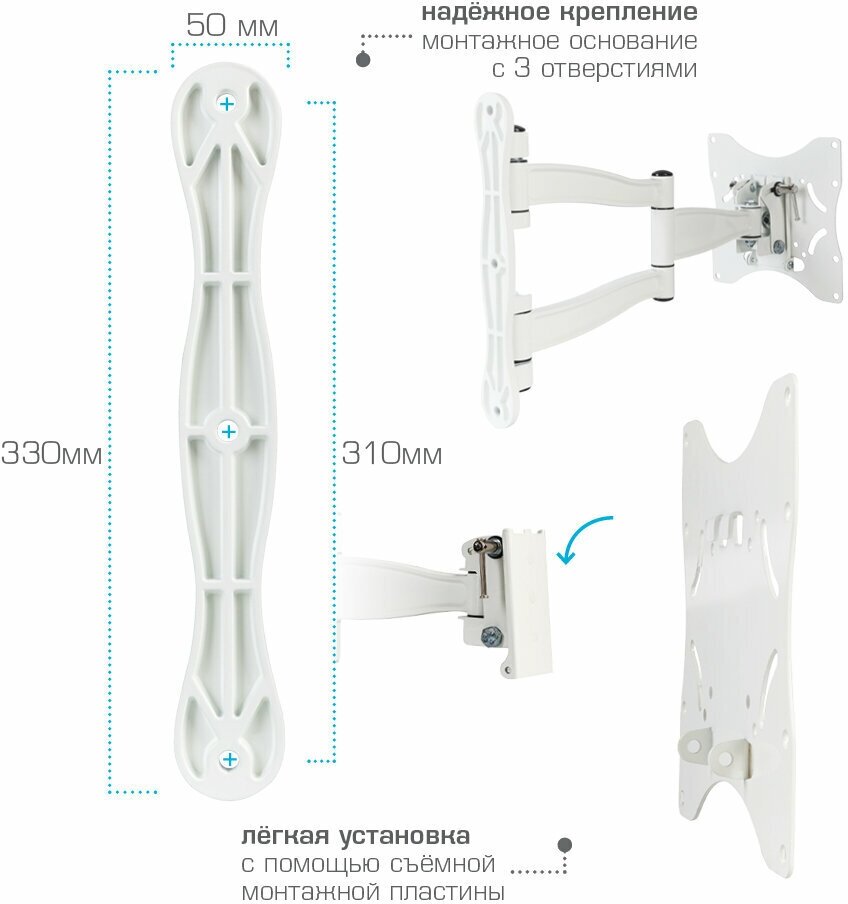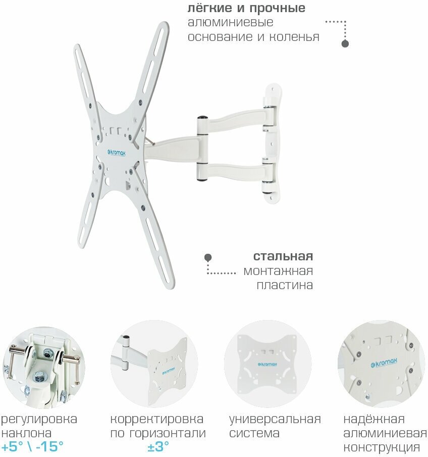 Кронштейн для телевизора Kromax TECHNO-5, 15-55", настенный, поворот и наклон, белый [20113] 3 840 ₽ Подробнее