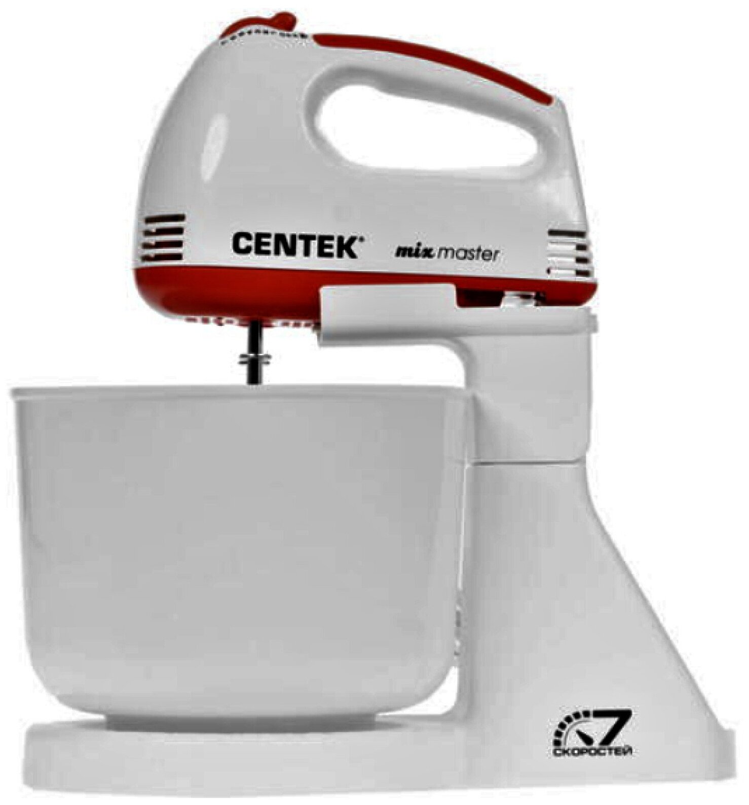 Миксер С Чашей Centek Ct-1113 (Белый/Красный) 170Вт, 6 Скоростей+Турбо, Взбивание/Замешивание CENTEK арт. CT1113