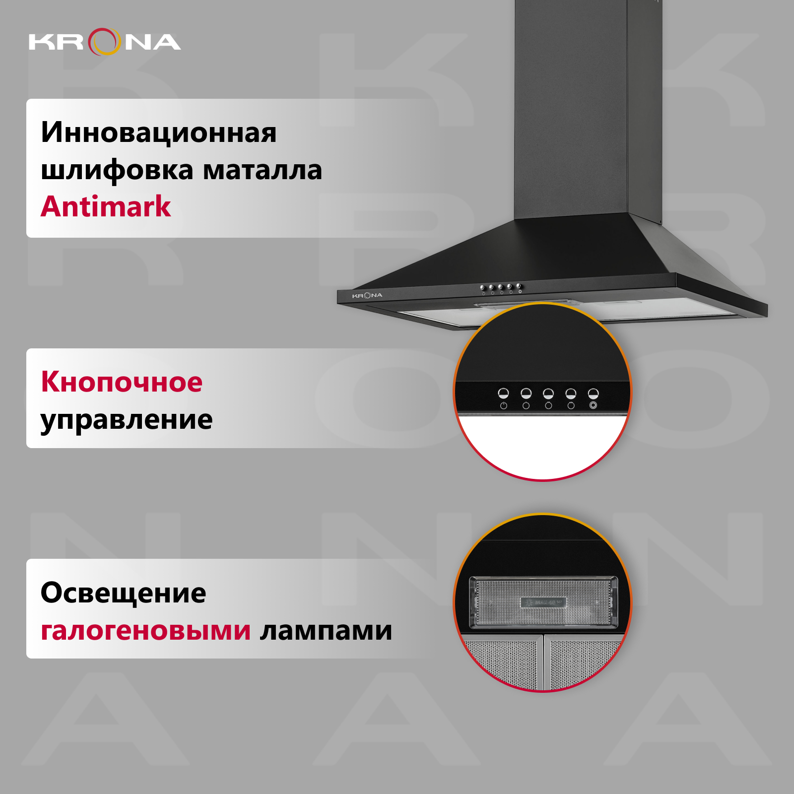 Вытяжки Кухонная вытяжка Krona Bella 600 BK push button