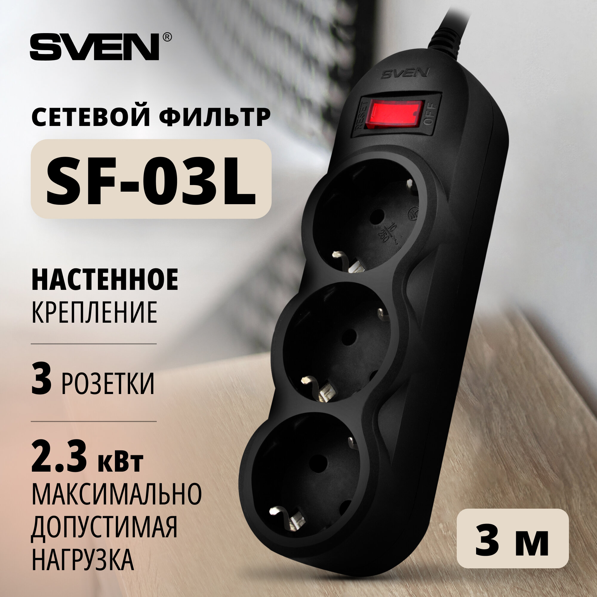 Sven Фильтр Sf-03l 3.0 м (3 евророзетки), черный [sv-015039]