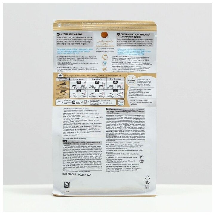 Лучшие цены. Сибирские кошки обладают рядом уникальных особенностей. Их плотная шерсть с двойным подшерстком действительно водонепроницаема: она обладает водоотталкивающими свойствами. С учетом этого продукт ROYAL CANIN® Siberian Adult содержит комплекс разнообразных веществ, в том числе, аминокислот, витаминов, жирных кислот омега-3 и омега-6, благодаря чему поддерживает здоровье кожи и красоту шерсти животных. Магазины в вашем городе.