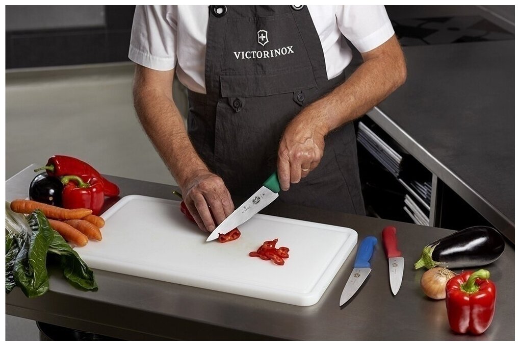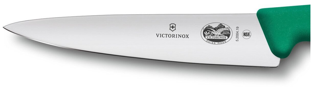 Лучшие цены. Нож разделочный VICTORINOX Fibrox с лезвием из нержавеющей стали 19 см и рукоятью из пластика зелёного цвета. Разделочный нож Fibrox из профессиональной линейки ножей Victorinox станет одним из самых надежных инструментов на Вашей кухне. Недаром, профессиональные повара с успехом используют его как для создания простых односложных блюд, так и для приготовления сложных пиршеств из шести блюд. Магазины в вашем городе.