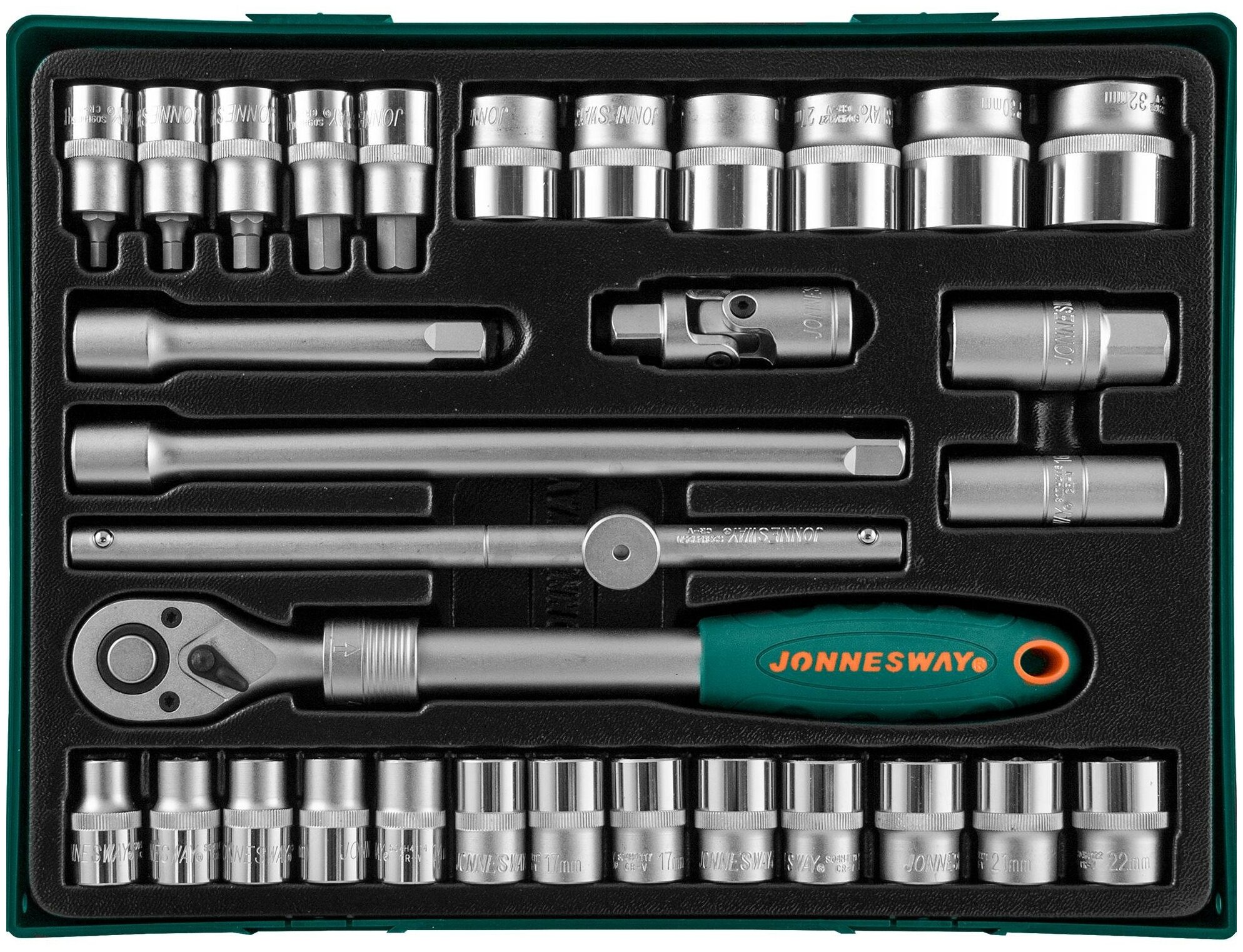 Лучшие цены. Набор торцевых головок 1/2"в ложементе 370x370мм 31 предмет Jonnesway S04H4131SP 49288 предназначен для монтажа и демонтажа резьбового крепежа, имеющего внешний или внутренний шестигранный профиль. Комплектация набора включает в себя удлинители и карданный шарнир, что позволяет выполнять работы в условиях ограниченного доступа к крепежу. Длительный срок службы гарантирован устойчивой к деформации и коррозии хромованадиевой сталью, из которой выполнены инструменты. Поставляется в ложементе 370х370мм. Магазины в вашем городе.