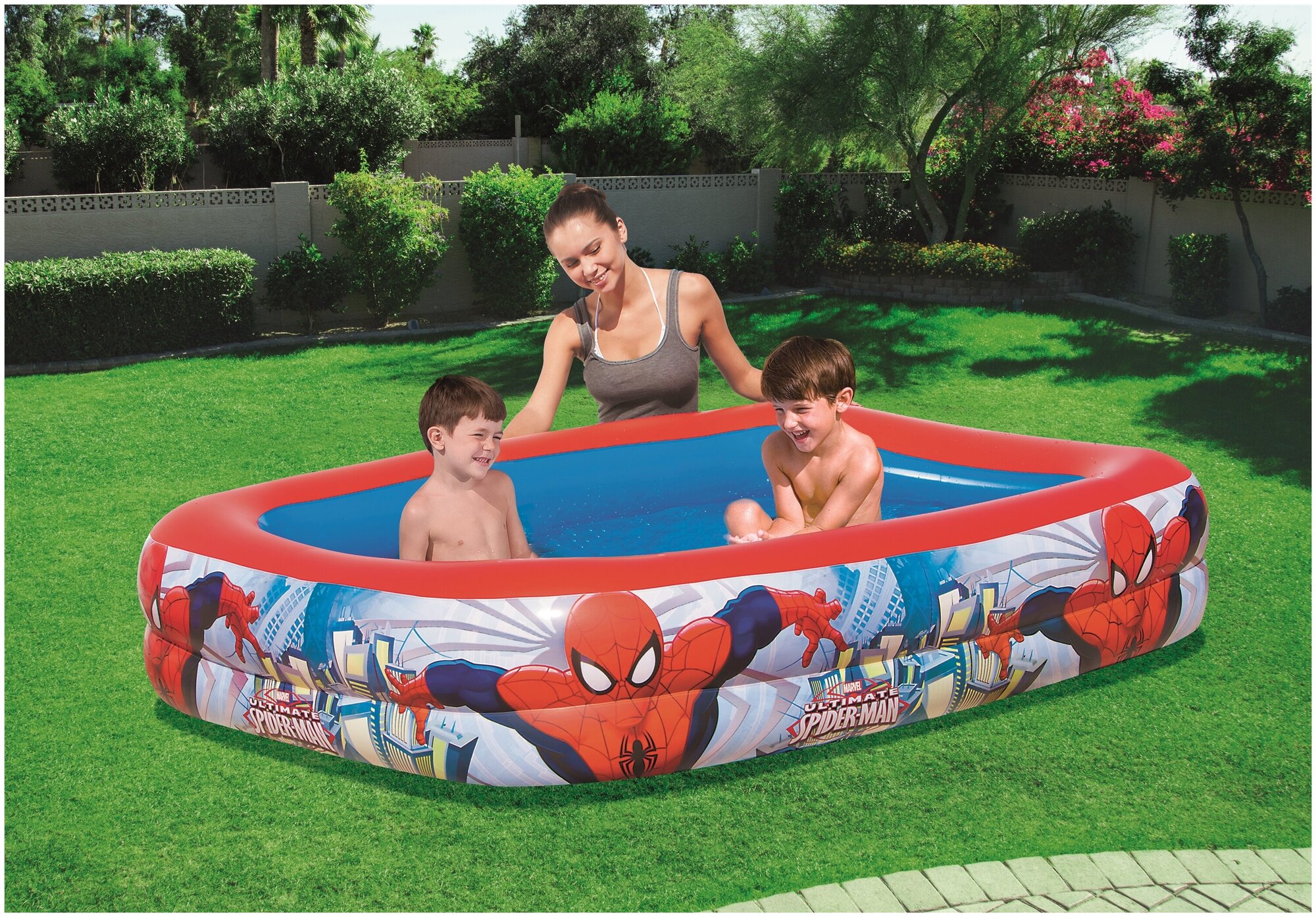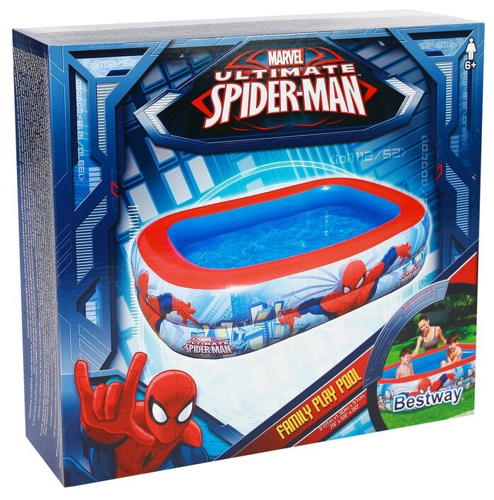 Лучшие цены. Детский бассейн оформлен персонажами из серии Spider-Man. Производитель позаботился о качестве продукта: бассейн выполнен из высококачественного ПВХ, толщиной - 0,30 мм, в форме прямоугольника, которая дает дополнительную жесткость, для удобства эксплуатации предусмотрен сливной клапан. Магазины в вашем городе.