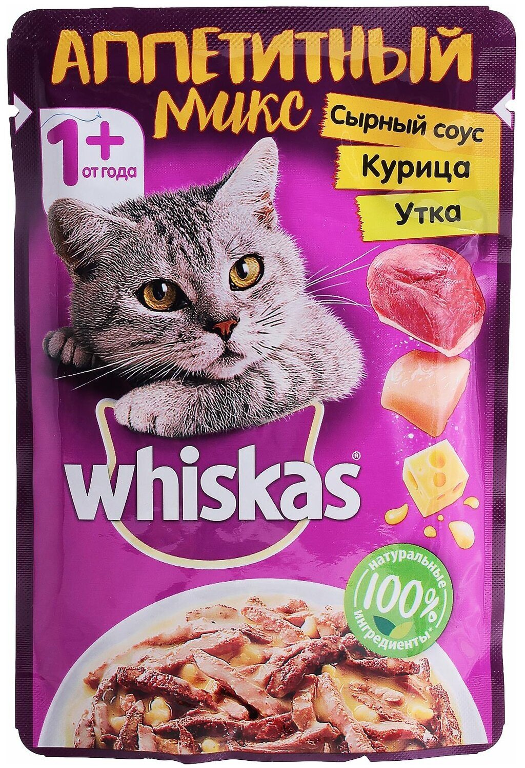 Лучшие цены. Курица, утка и нежный сырный соус - сразу всё, о чём мечтала ваша кошка, в новой коллекции сбалансированных блюд WHISKAS Аппетитный микс. В каждом из паучей содержится три основных ингредиента: разные виды мяса или морепродуктов смешиваются в нежнейшем соусе или желе, чтобы вы воплощали мечты своих любимцев. WHISKAS для взрослых кошек это: Оптимальный баланс питательных веществ для полноценной жизни. Магазины в вашем городе.