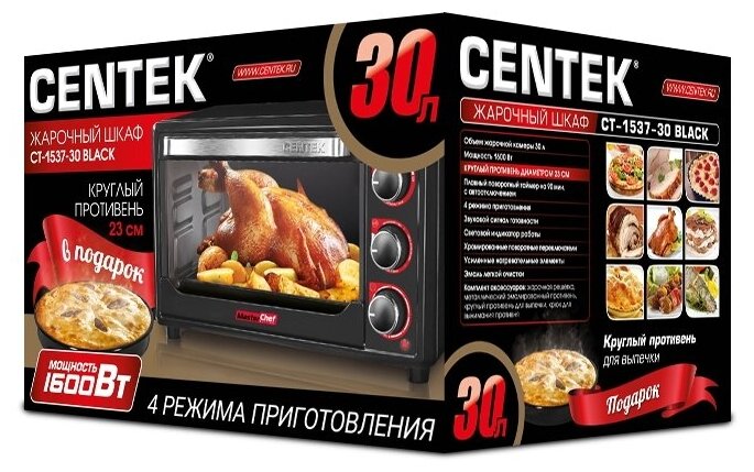 Жарочный шкаф Centek CT-1537-30 RED (красн) <30л> 1600Вт +противень, таймер 90мин, 4 реж., max 320°