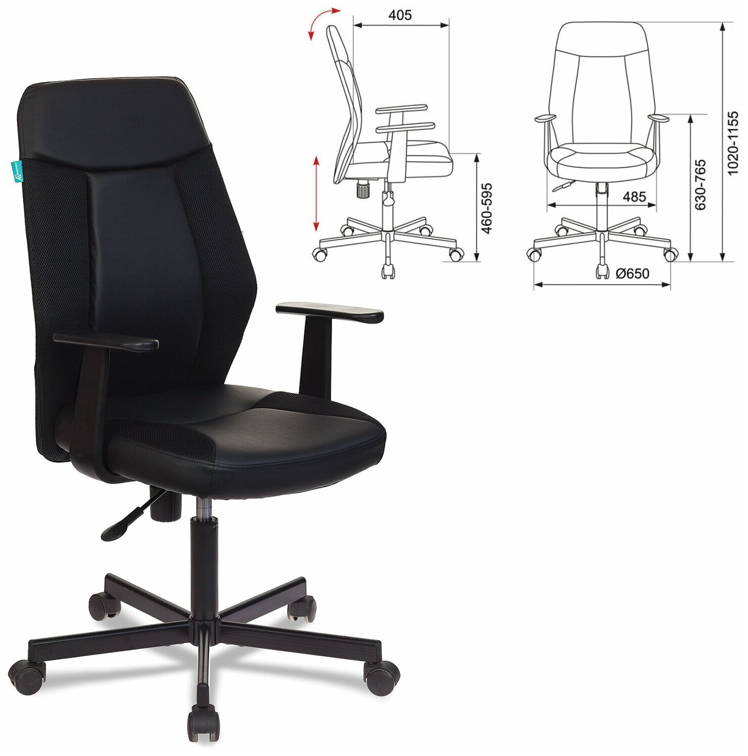 Кресло CH-606, с подлокотниками, ткань/экокожа, черное, 1110367