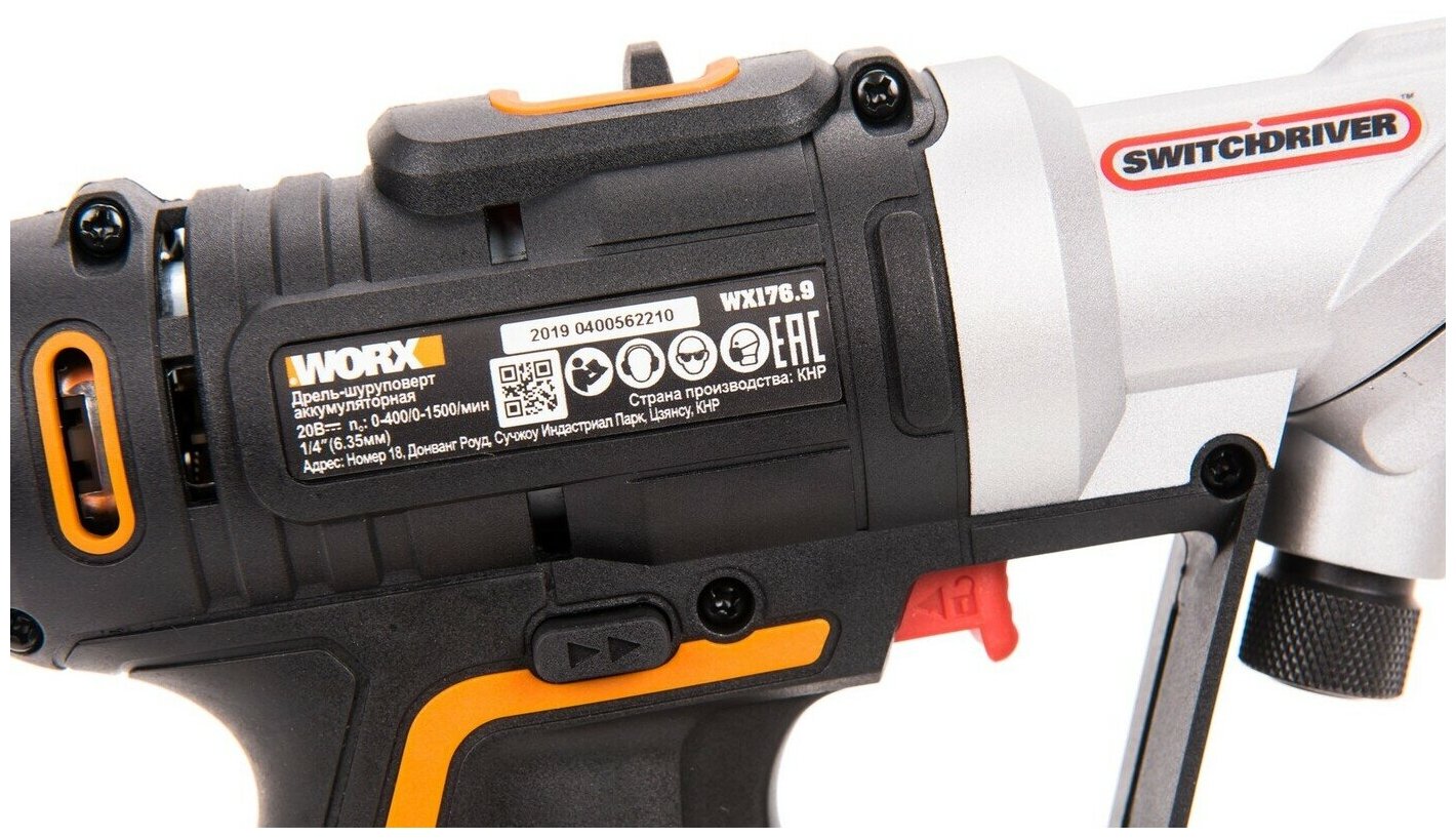 Дрель/шуруповерт Дрель-шуруповерт аккумуляторная Worx Switchdriver WX176.9, 20 Нм, 20 В, без АКБ и ЗУ, коробка