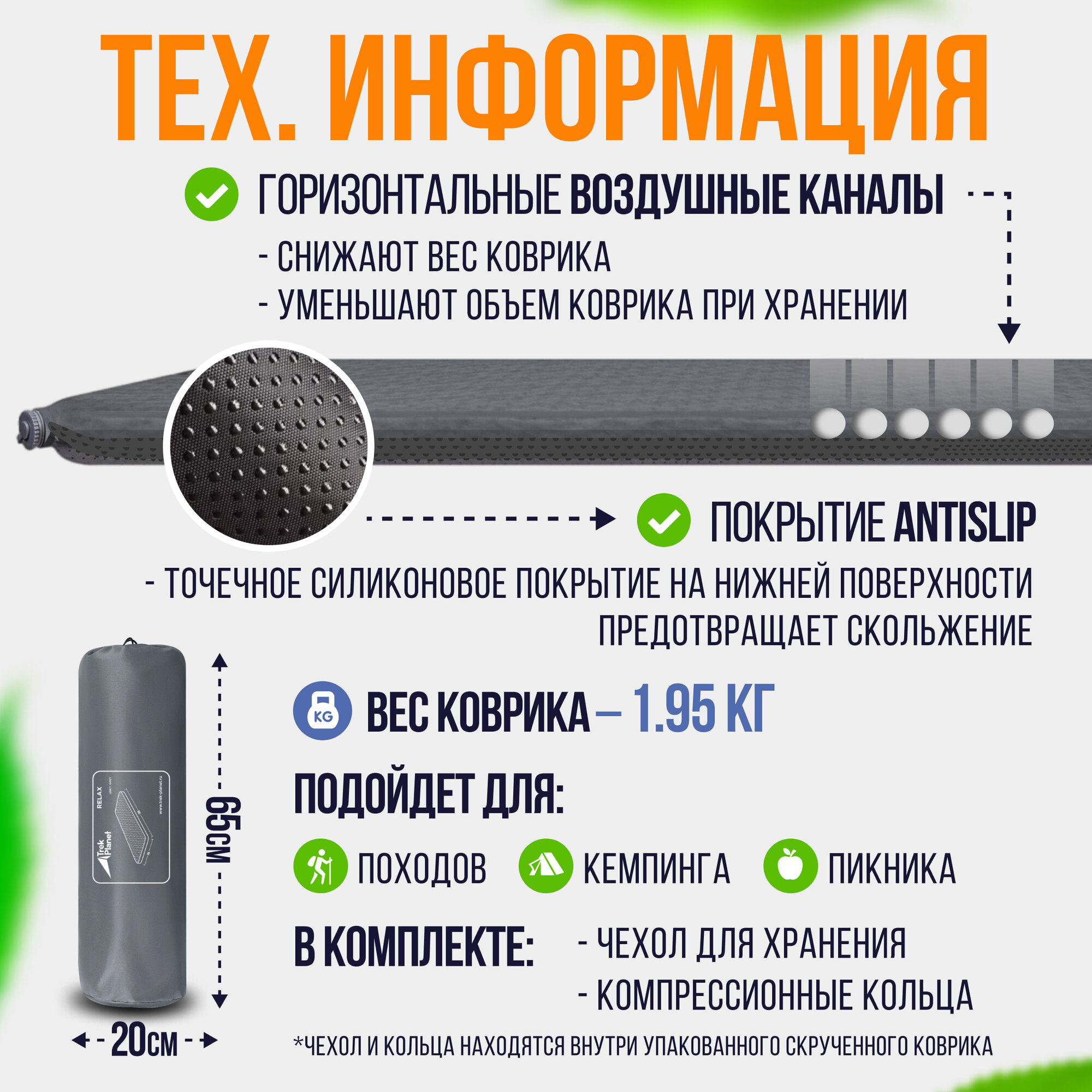 Коврик самонадувающийся TREK PLANET Relax 50, серый (198 х 63,5 х 5 см) 4 190 ₽ Подробнее