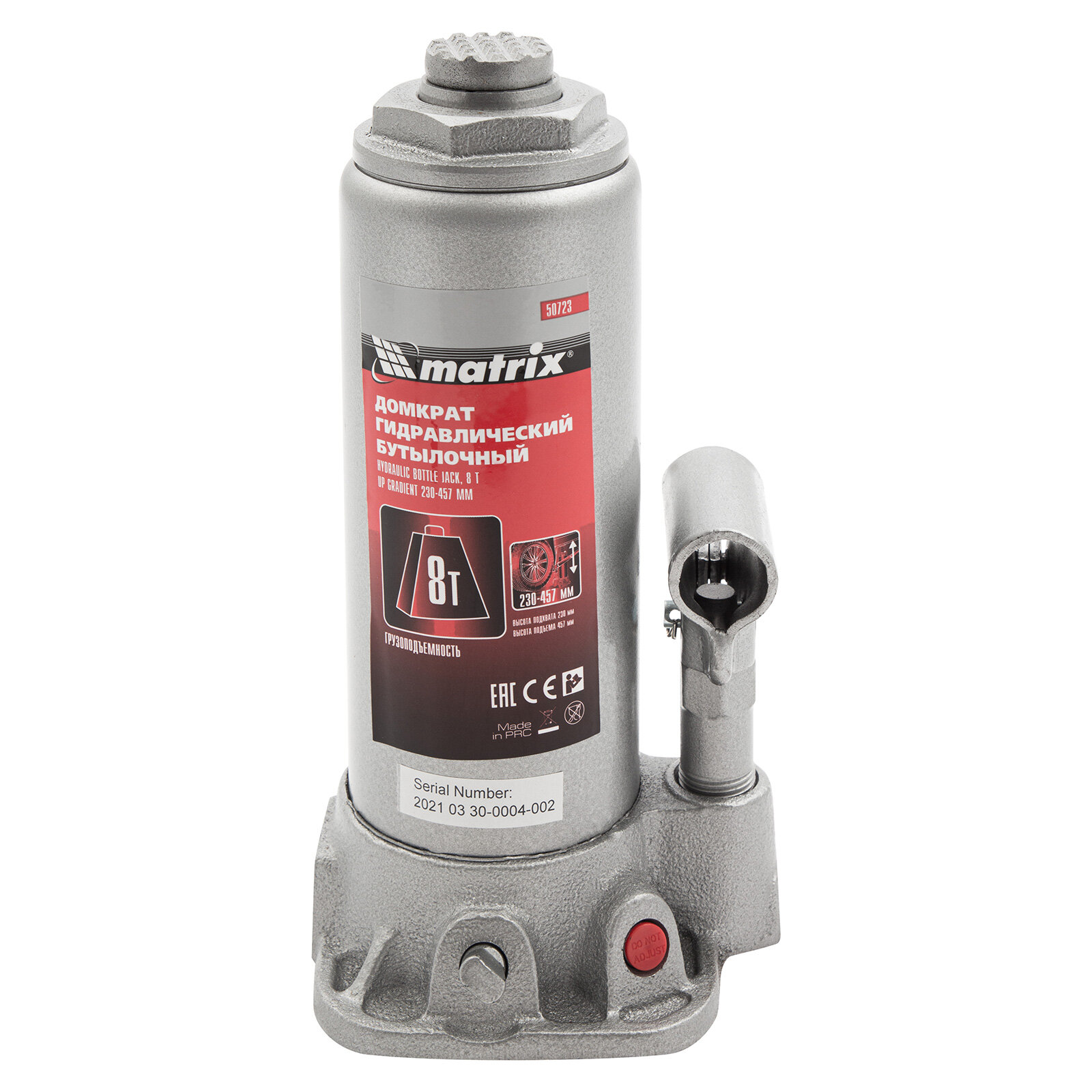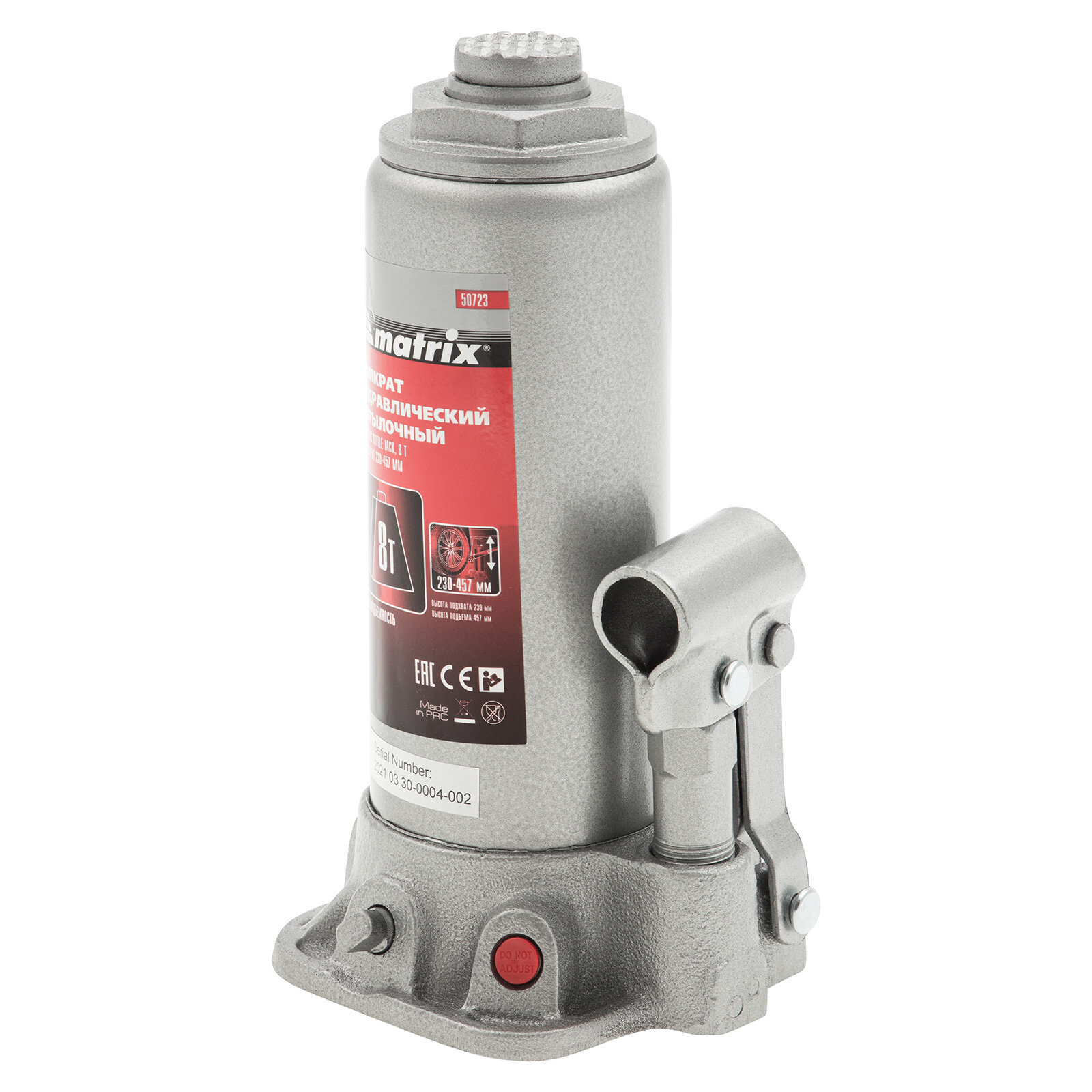 Домкрат гидравлический бутылочный, 8 т, h подъема 230457 мм// Matrix 50723 .