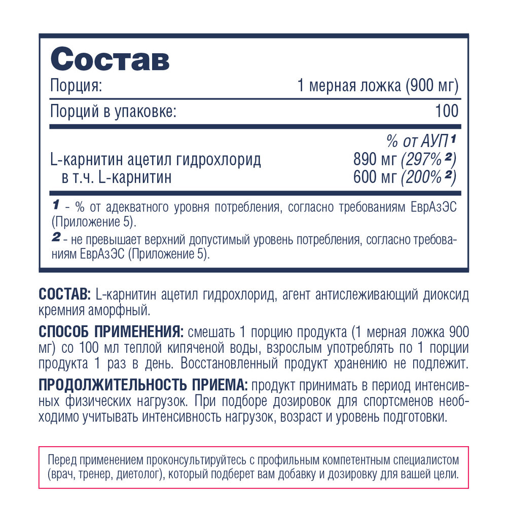 ALCAR Acetyl L-Carnitine HCL Powder, 90 г, Unflavored / Без вкусовых добавок