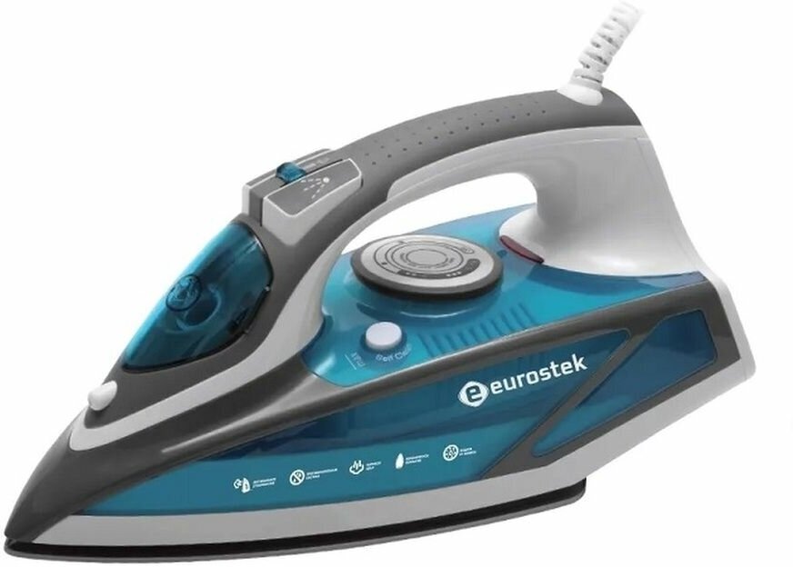 Лучшие цены. Утюг Eurostek ESI-BN04B – удобный бытовой прибор с эргономичной рукояткой и стильным синим дизайном. Модель оснащена качественной керамической подошвой и небольшой емкостью для воды на 350 мл. Устройство дополнено функцией парового удара, осуществляемой со скоростью 120 гр/мин.Прибор Eurostek ESI-BN04B оснащен надежной противокапельной системой. Также имеется система защиты от образования накипи, возникающей при использовании сырой воды. Магазины в вашем городе.