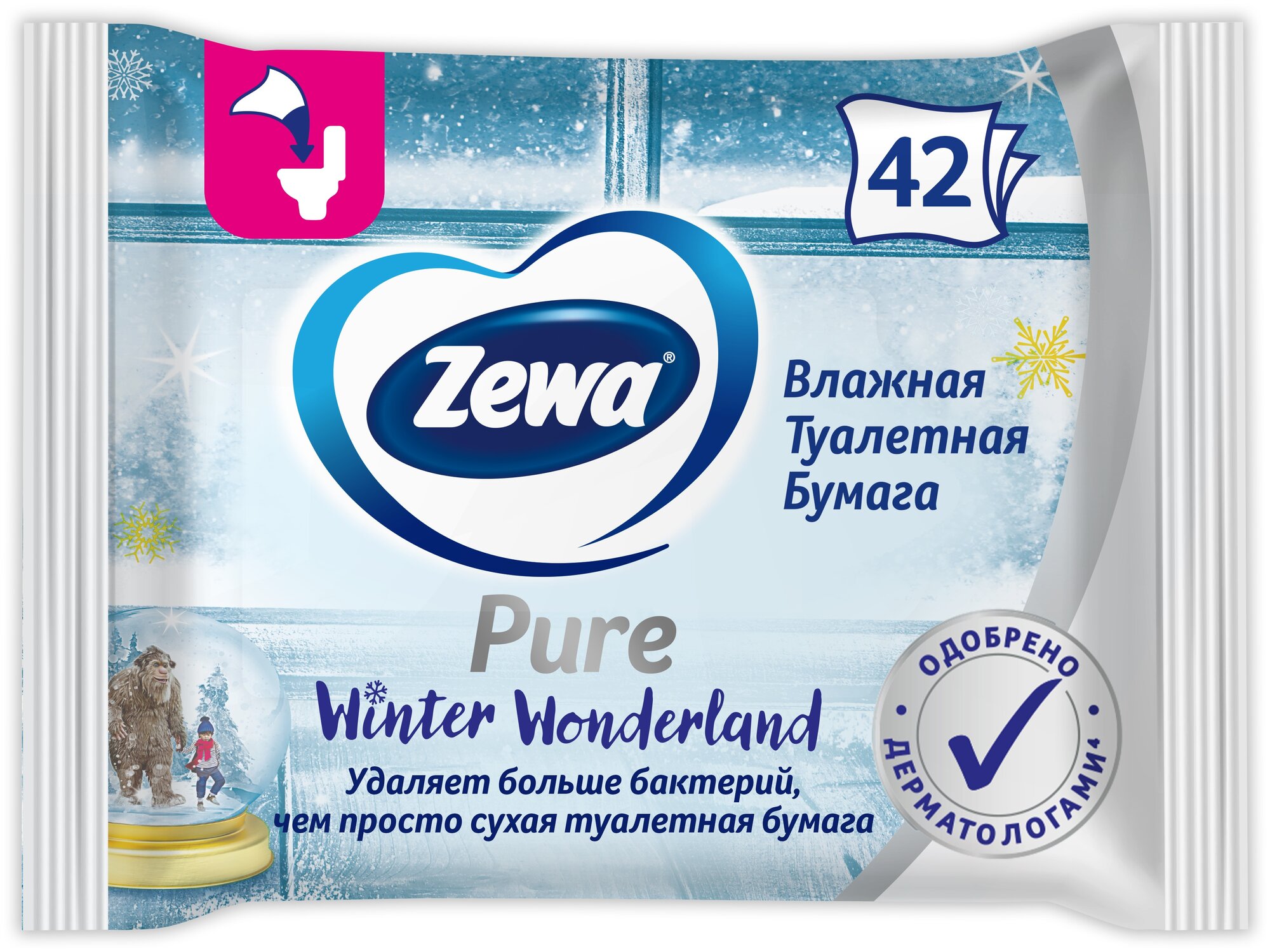 Влажная туалетная бумага Zewa Pure белая 42 лист.