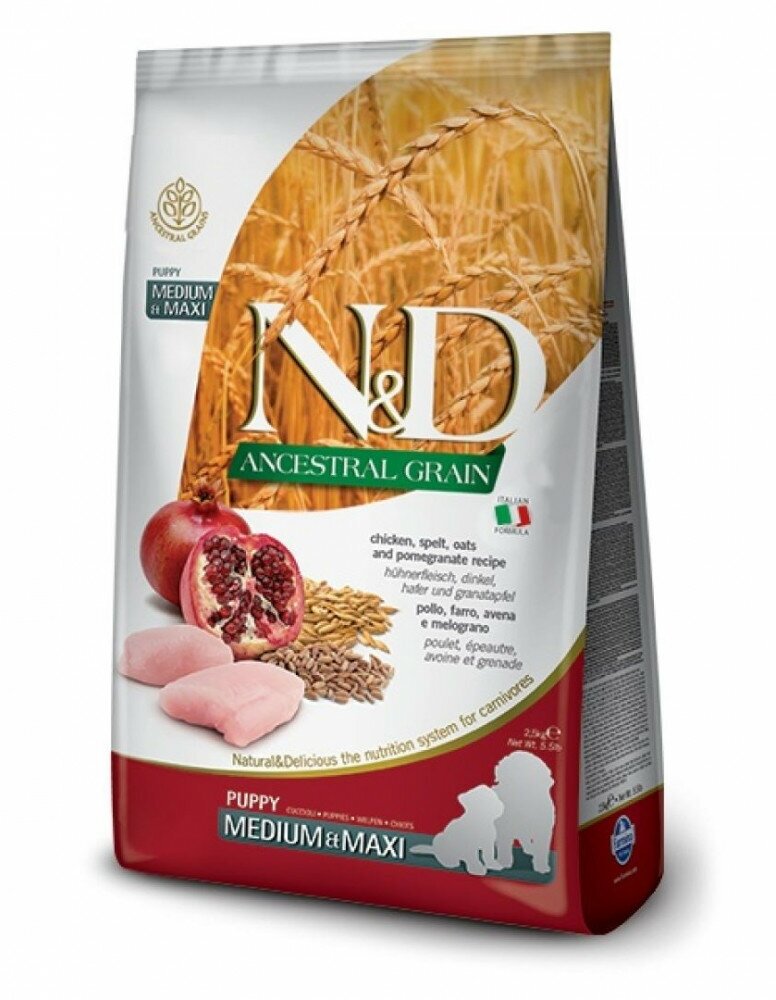 Фармина N&D ANCESTRAL GRAIN LINE для собак CHICKEN, SPELT, OATS&POMEGRANTE Puppy medium&maxi, 2,5 кг