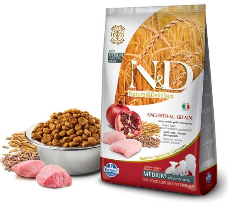FARMINA DOG N&D ANCESTRAL GRAIN PUPPY MEDIUM & MAXI CHICKEN & POMEGRANATE низкозерновой для щенков средних и крупных пород с курицей и гранатом (12 кг)