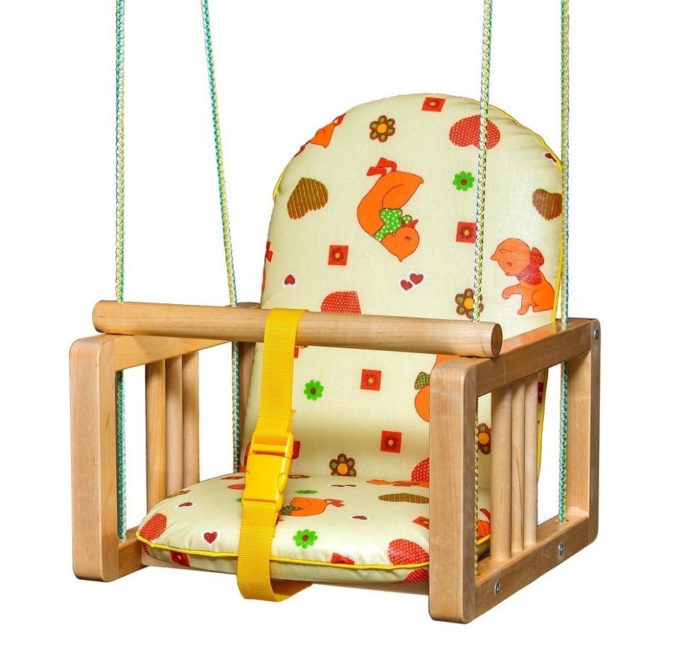 Лучшие цены. Удобные и прочные деревянные качели для детей от 1 года, которые вы можете разместить где угодно. Мягкое сидение (моется). Страховочный ремешок между ножек. Крепится на перекладину на прочные веревки. В качестве обеспечения безопасности у качелей предусмотрены высокие ограничительные подлокотники, а также бампер-поручень для ручек ребёнка и широкий мягкий ограничительный ремешок между ножек, для защиты от выскальзывания вниз. Магазины в вашем городе.