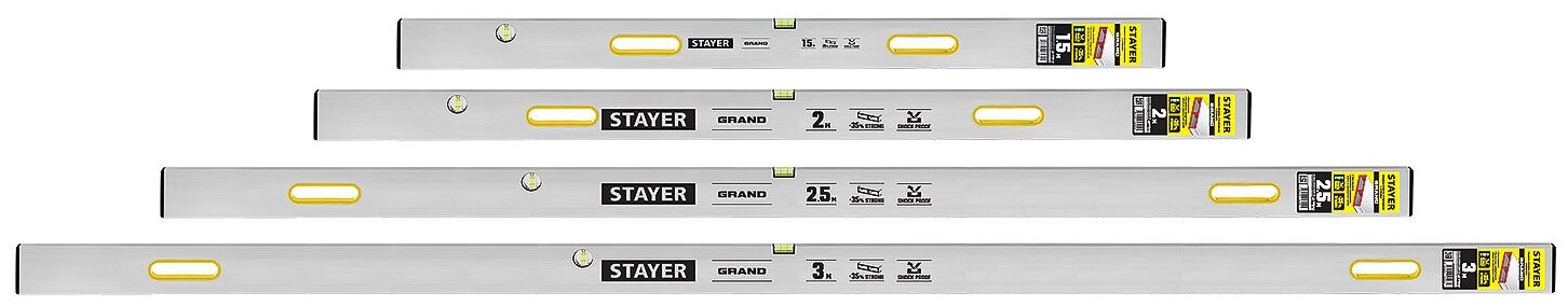 STAYER GRAND 2.5 м, точность 1 мм/м, 2 глазка, Правило с уровнем и ручками, (10752-2.5)