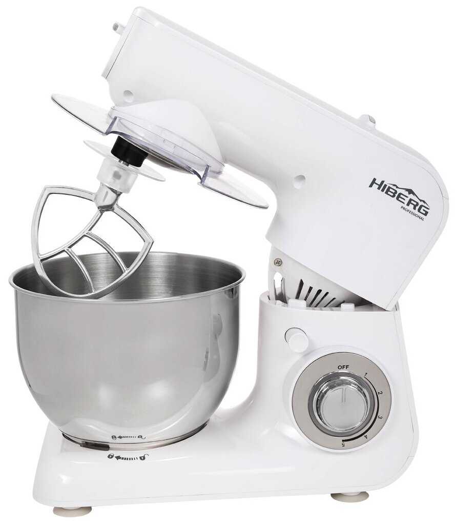 Миксер HIBERG MP 1040 W, 100 Вт, 4 л. Нерж. Чаша, 5 режимов, белый