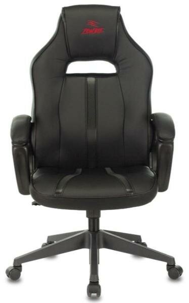Лучшие цены. Тип: Кресло игровое; Материал обивки: искуственная кожа; Цвет обивки: чёрный; Подлокотники: да; Механизм качания: с регулировкой по весу, с фиксацией в вертикальном положении; Регулировка по высоте: газлифт; Вращение по горизонтали: да; Основание: крестовина с колёсиками; Ограничение по весу: 181 кг; Дополнительно: Крестовина пластик, Колеса для паркета и ламината. Магазины в вашем городе.