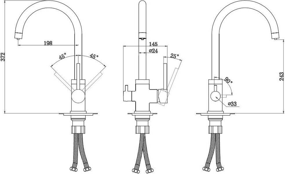 | Подвод воды | шланги / 450 мм / G 1/2" |