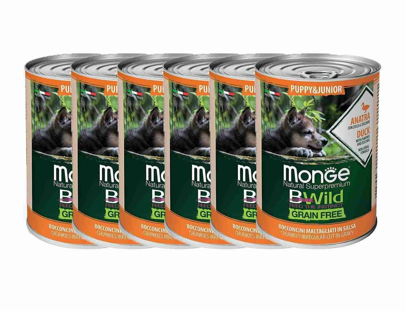Влажный корм для щенков Monge BWILD Puppy&Junior Anatra, утка, с тыквой, с цукини, 6 шт. х 400 г