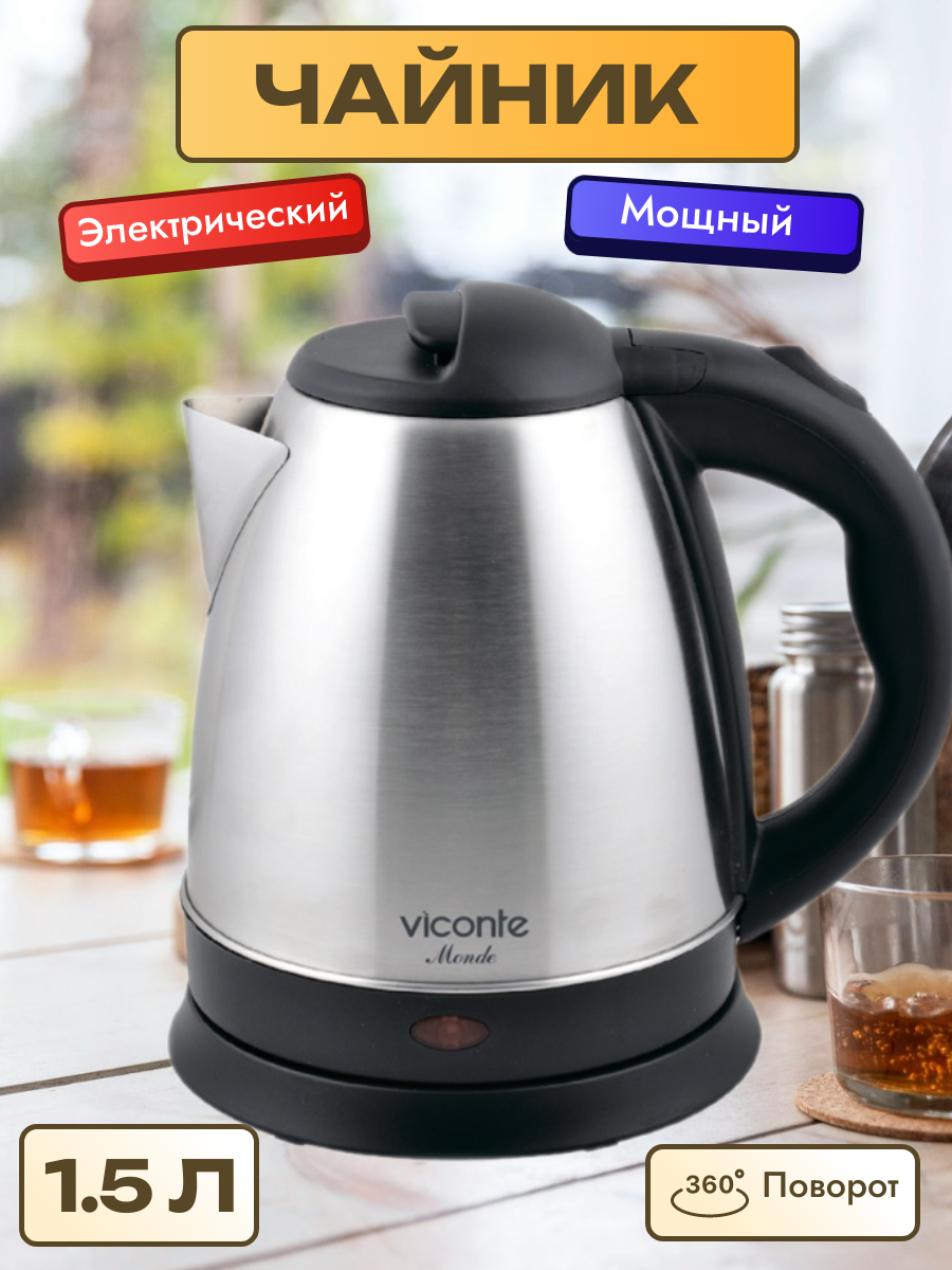 Чайник Viconte VC-3275 нерж. 1,5л,1,8кВт,диск