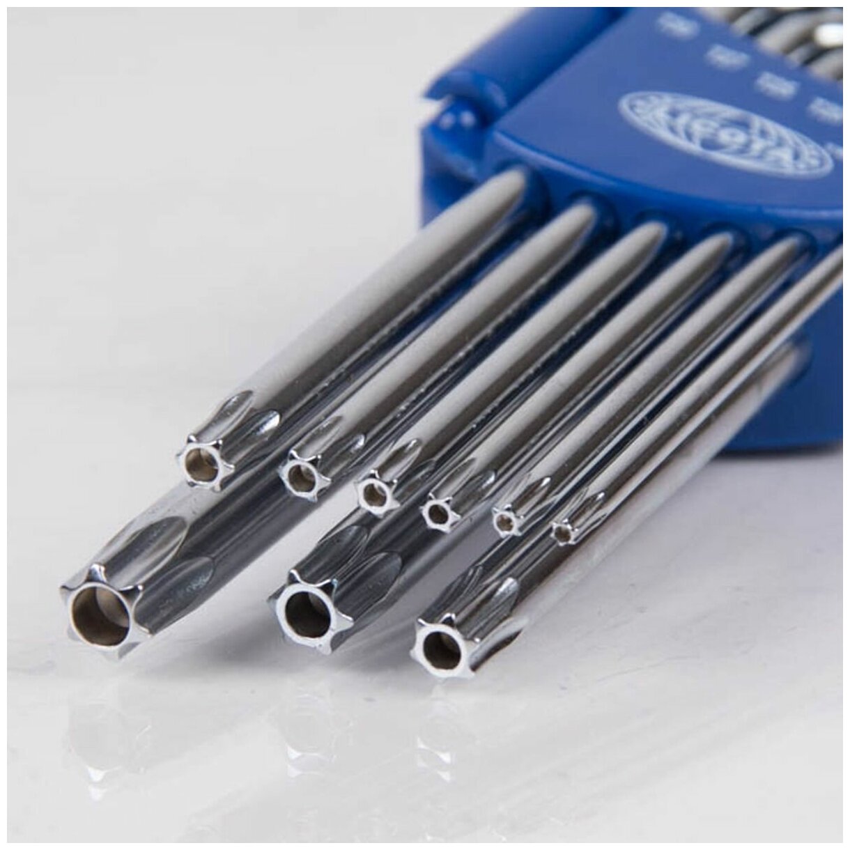 Лучшие цены. Набор ключей угловых (имбусовых) экстра длинных Licota 2TF30091DPM для работы с крепежом с внутренним профилем Torx с отверстием. Набор из 9 ключей размерами от T10 до T50 мм. Используется в автомастерских и сервисах по ремонту электроприборов, велосипедов, топливной аппаратуры и другой техники. Устойчивость к нагрузкам Набор изготовлен из прочной инструментальной стали S2, устойчивой к динамическим нагрузкам. Долгий срок службы Хромовое покрытие предохраняет ключи от коррозии. Магазины в вашем городе.