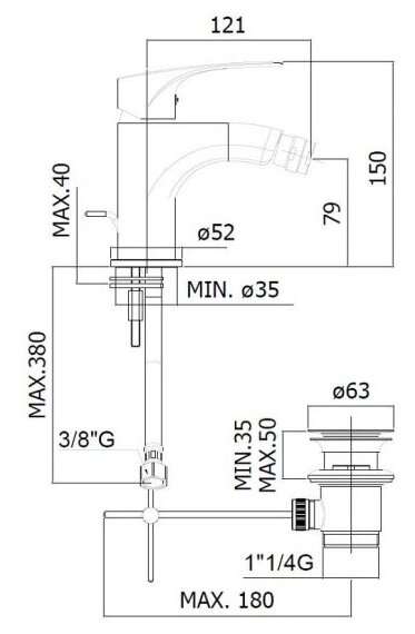 | Подвод воды | шланги / 380 мм / G 3/8" |