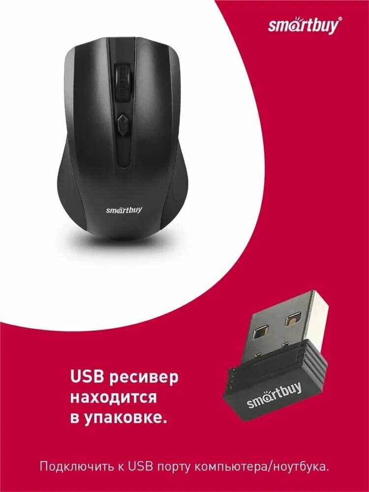 Мышь оптическая беспроводная SmartBuy ONE 352, USB, черная (SBM-352AG-K)