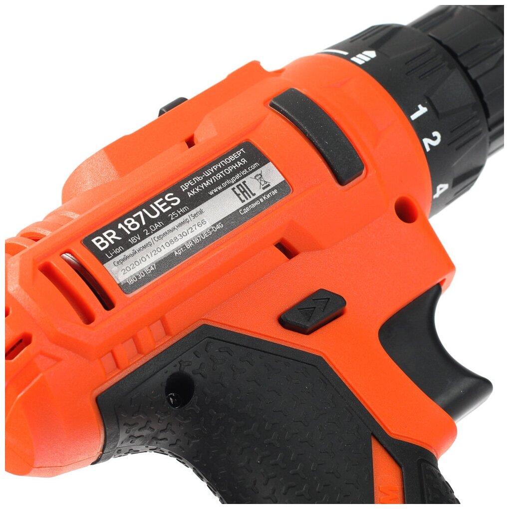 Лучшие цены. Шуруповерт BR 187UES предназначен для работы с крепежом и сверления отверстий. Оснащен реверсом и тормозом двигателя. Расположение светодиода обеспечивает оптимальную видимость. Увеличенная аккумуляторная батарея с противоскользящим покрытием повышает устойчивость, сопротивление ударам и падениям. Li-Ion батареи не имеют «эффекта памяти», обладают большой емкостью и существенно легче аккумуляторов, изготовленных на основе других технологий. Магазины в вашем городе.