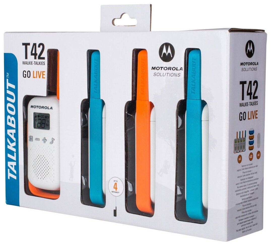 Комплект из четырёх радиостанций Motorola TALKABOUT T42 quad голубой/оранжевый