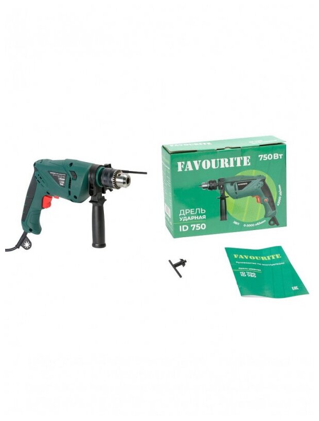Лучшие цены. Дрель ударная Favourite ID 750 - оптимальное решение для применения в домашних условиях. Модель предназначена для сверления отверстий в материалах разной плотности, а при необходимости может использоваться для работы с крепежными элементами. Характеристики: Потребляемая мощность: 750 Вт; Регулировка числа оборотов: да; Кол-во скоростей: 1; Тип патрона: ЗВП; Число ударов/мин: 42000; Размер патрона: 13; Макс. диаметр сверления в дереве: 25 мм; Макс. диаметр сверления в бетоне: 16 мм; Макс. Магазины в вашем городе.