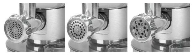 | Аксессуары | венчик для взбиваниякрюк для замеса тесталопатка для перемешивания (биттер)3 диска для фаршанасадка для кеббенасадка для домашних колбасд |