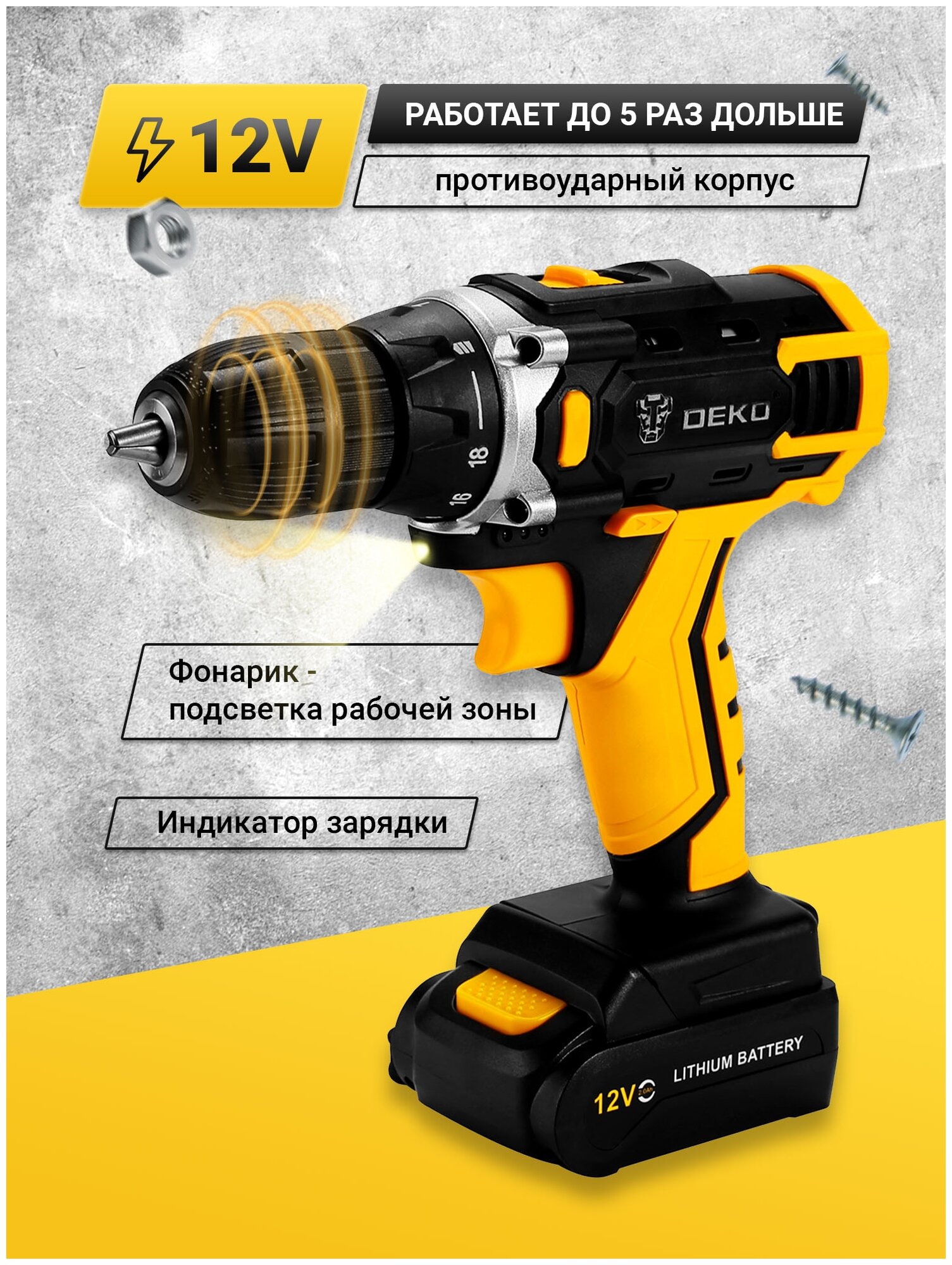 Аккумуляторная дрель Deko DKCD12FU-Li 1.5Ah Advanced черно-желтый