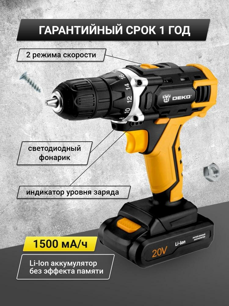 Аккумуляторная дрель-шуруповерт DEKO DKCD20FU-Li 063-4103 (063-4103)