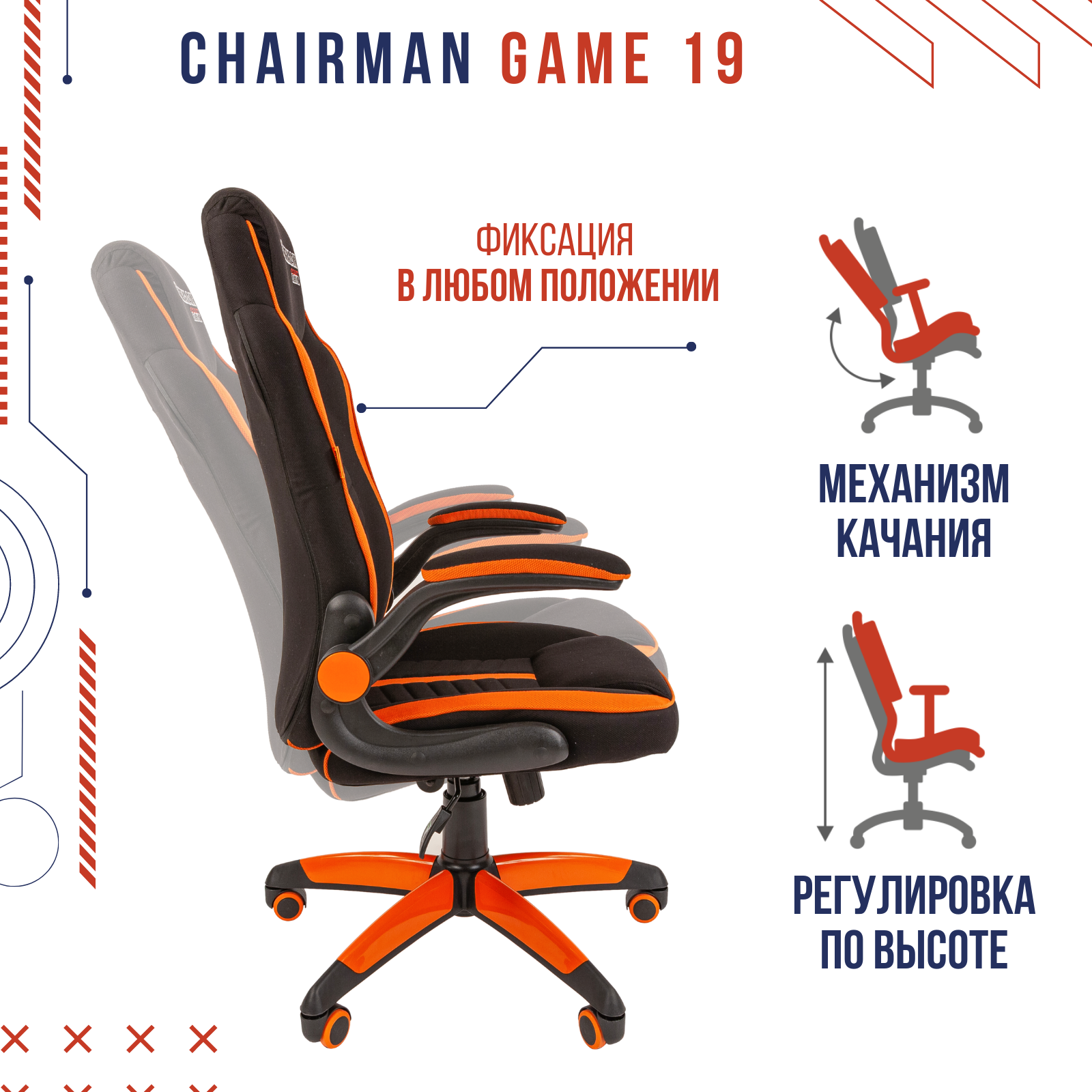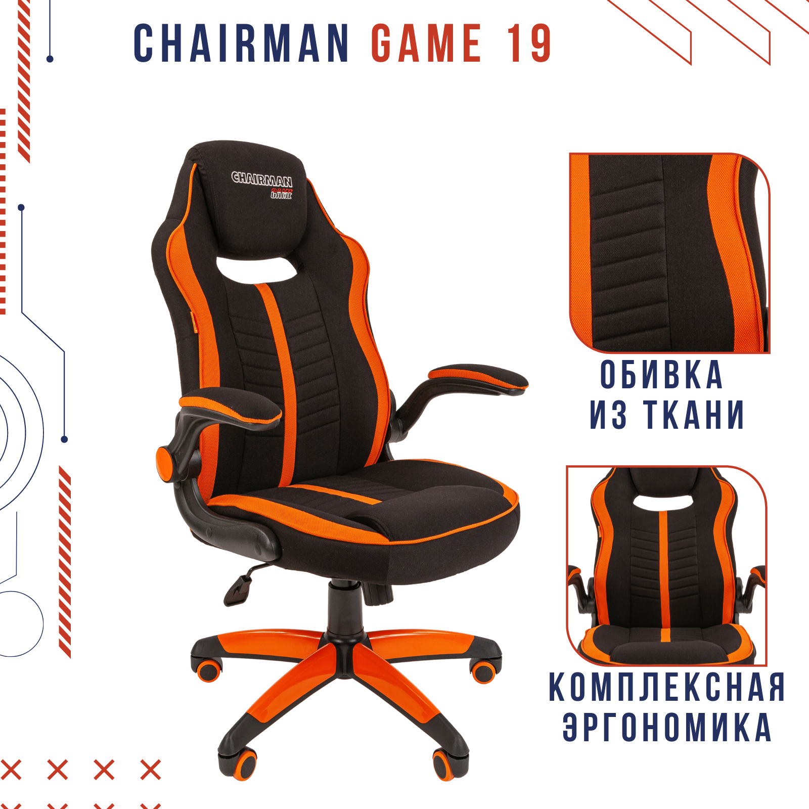 Компьютерное кресло Игровое компьютерное кресло с откидными подлокотниками CHAIRMAN GAME 19, ткань, черный/оранжевый