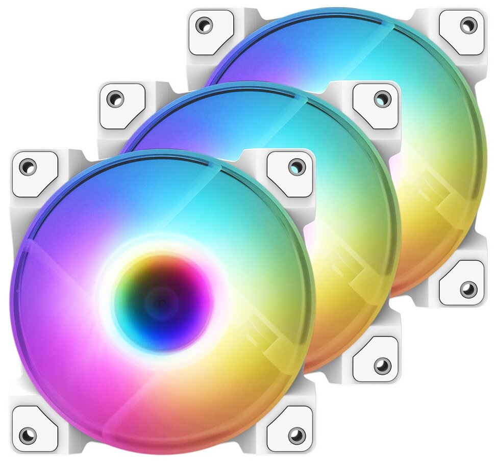 Вентиляторы 120x120x25 ID-Cooling DF-12025-ARGB TRio Snow (3 in 1) Пульт управления PWM резиновые углы Addresable RGB 900-2000об/мин снежно белый