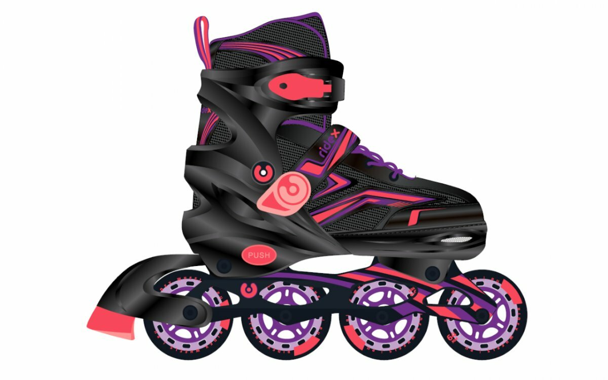Лучшие цены. Раздвижные ролики RIDEX Remi Pink - качественная модель, которая благодаря раздвижному пластиковому внешнему ботинку подойдет для райдера любого возраста. Яркий дизайн в розовых тонах порадует глаз, а удобный мягкий внутренний ботинок из синтетических материалов обеспечит максимально комфортную среду для ног. Обычная шнуровка и бакли надежно фиксируют ногу в ботинке. Магазины в вашем городе.