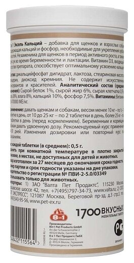 Лучшие цены. 8 в 1 Эксель, Кальциевая добавка для Собак (Exel Сalcium), 1700 таб. Магазины в вашем городе.