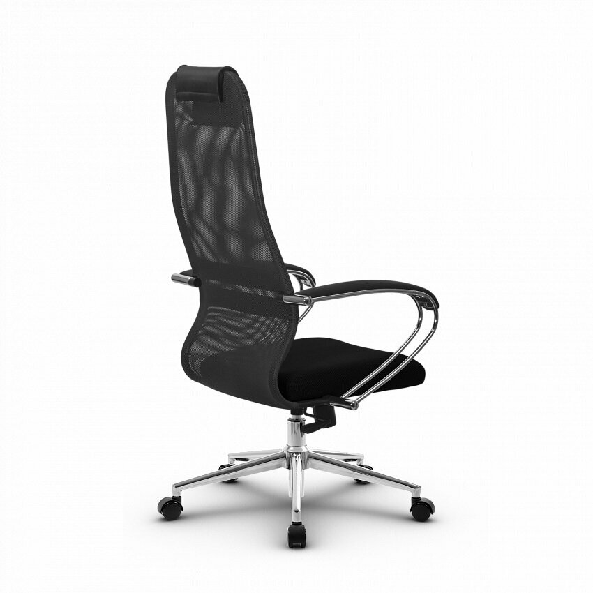 Кресло компьютерное для руководителей Метта SU-B-8, офисный стул на колесиках, с подголовником, ткань/сетка, черный