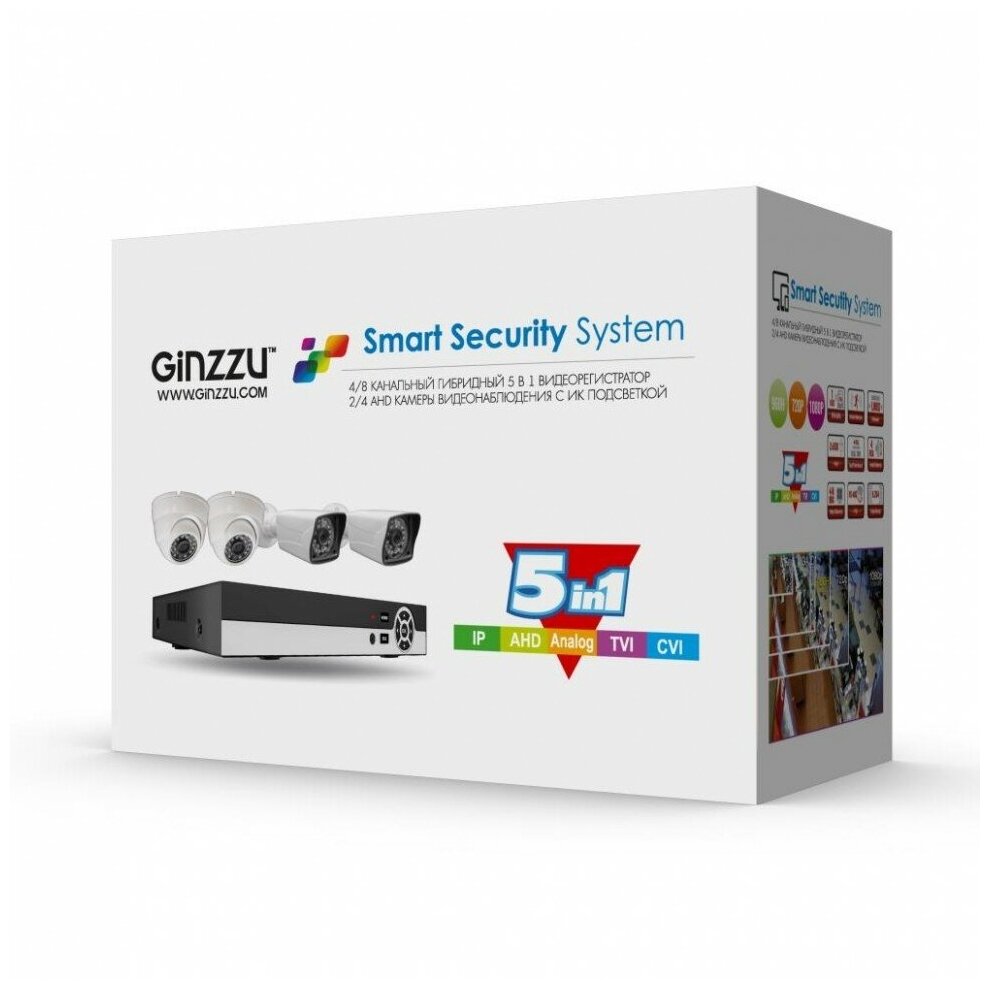 Комплект видеонаблюдения Комплект видеонаблюдения Ginzzu HK-426D 4 канала 2Mp 2 камеры