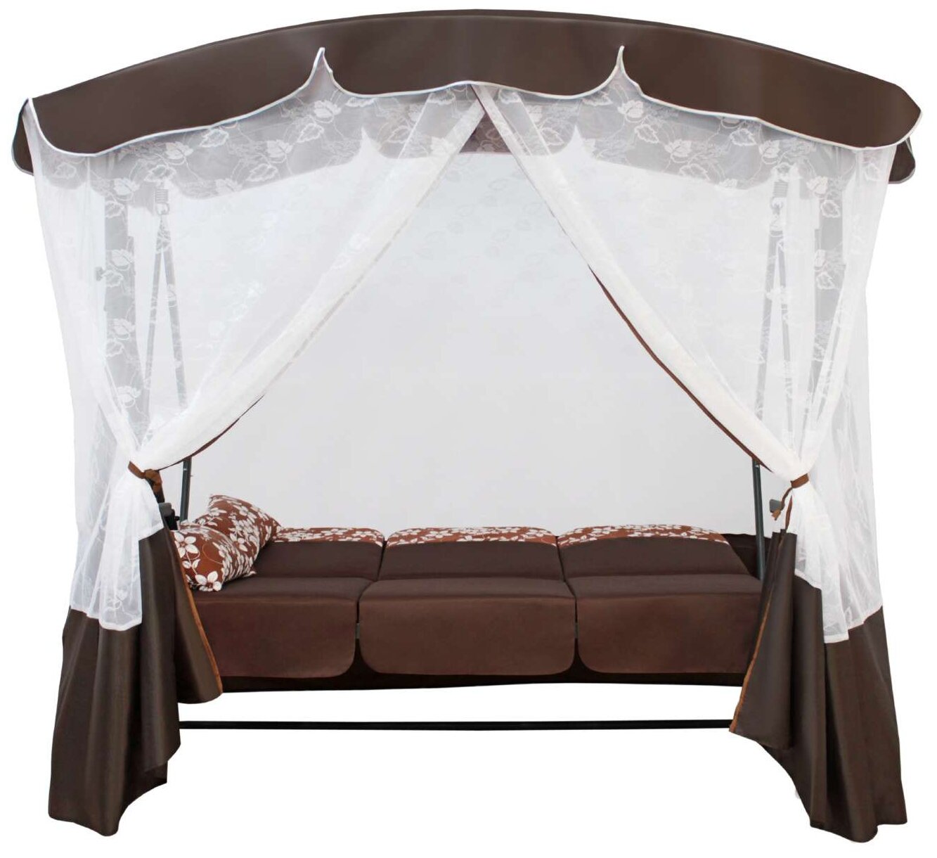 Лучшие цены. В качелях используются полноценные занавесы из тюля вместо обычной москитной сетки. Модель оснащена мощным каркасом диаметром 63 мм. В комплекте идет удобный прикачельный столик, а дизайн занавес сшит по форме балдахина. Магазины в вашем городе.