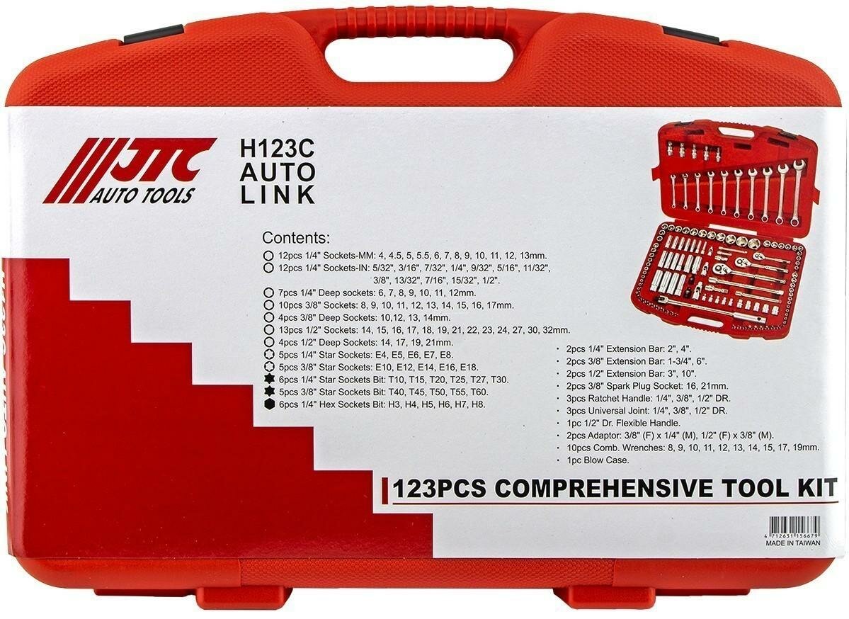 JTC-H123C Набор инструментов 1/4" & 3/8" & 1/2" 6-гранный (в кейсе) 123 предмета
